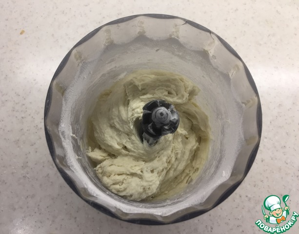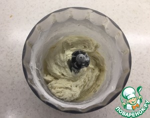 Отжатую капусту смешать с мукой и оливковым маслом в блендере.