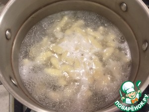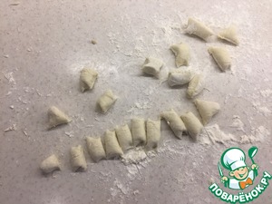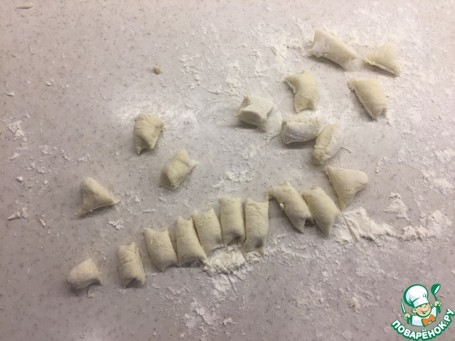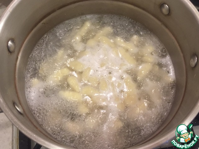 В кипящую подсоленную воду засыпать наши ньокки. Варить 3-4 минуты, пока ньокки не всплывут.