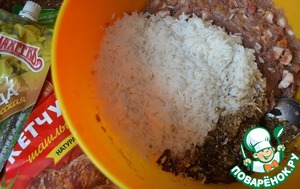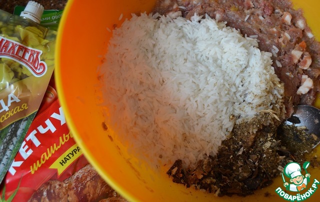 Добавить кетчуп, горчицу - это придаст начинке пикантный вкус и сочность. Перемешать. -