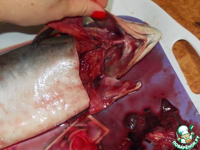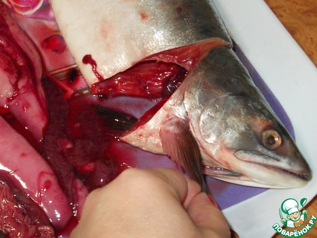Обращаю Ваше внимание, что извлекать потроха надо предельно осторожно, чтоб не повредить желчный пузырь (он виден на фото). Если его повредить, то рыба будет горчить!