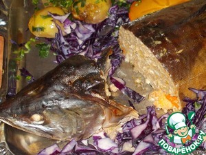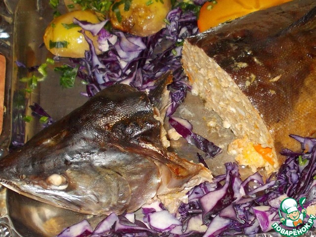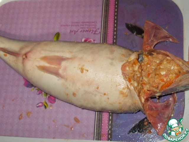 Запекаем 35-40 минут. Если Ваша рыба была крупнее, то запекайте 45-50 минут. Очень крупную рыбу более 2 кг запекать около 1 час 30 минут.