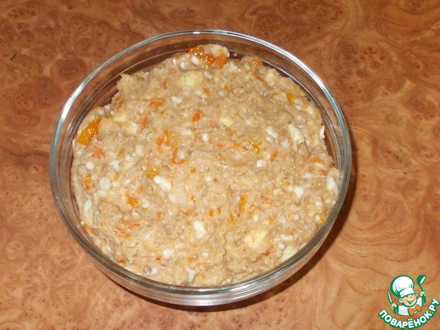 Все перемешиваем до однородности и вмешиваем кусочки сливочного масла.