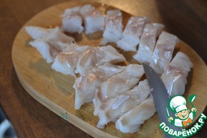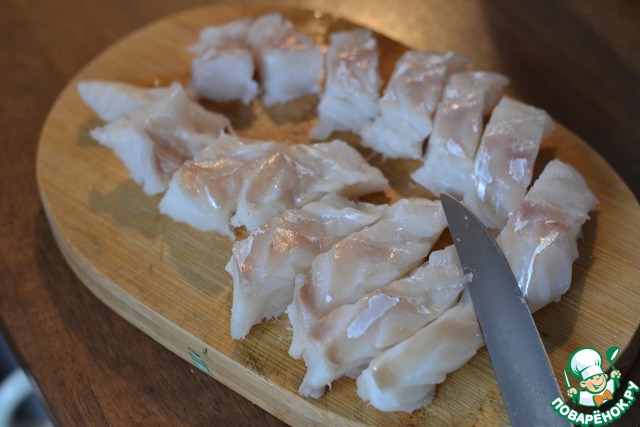 Выкладываем кусочки трески в маринад и варим на медленном огне 5 минут. Маринад слить. Рыбу выкладываем в отдельную большую миску