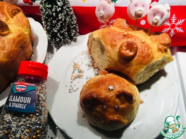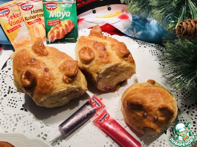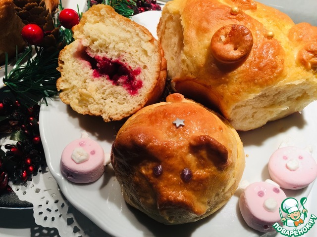 Рецепт «Булочки "Поросята" с маршмэллоу и вишней»:
