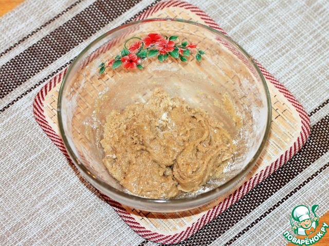 4. Горячую медовую смесь вылейте в мучную и перемешайте.