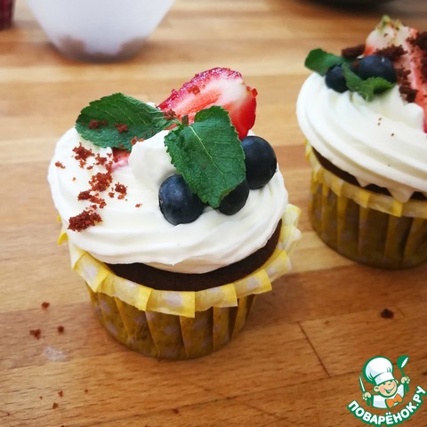 Можно украсить капкейк свежими ягодками, кусочками фруктов, кондитерскими посыпками, бусинами, шоколадной крошкой или веточкой мяты. Приятного аппетита!
