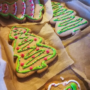 Вырезанные фигурки выложите на противень и поставьте на 180 С в духовку. Выпекайте от 7 до 15 минут. Когда бока и низ начали румяниться – пряники готовы, можно приступать к росписи!