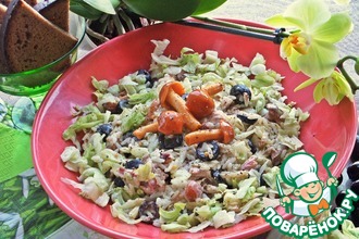 Очень легкий салатик)) Мне нравится)) И он будет у меня на новогоднем столе))) Отзыв выложу)))