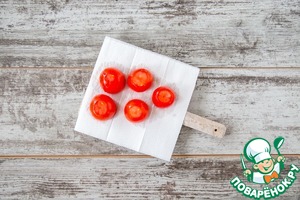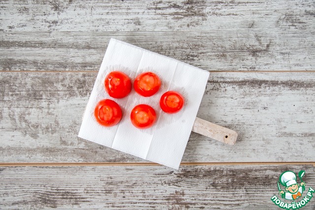 Слегка посолите помидоры изнутри и переверните их срезом вниз на бумажные полотенца, чтобы стек лишний сок.