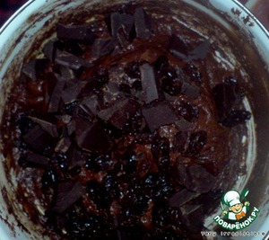 Добавляем в смесь изюм, кусочки шоколада и перемешиваем.