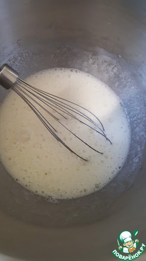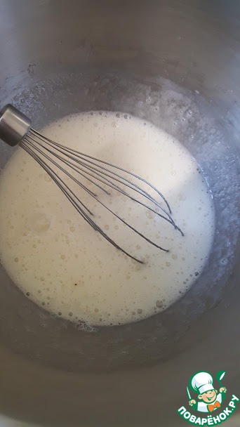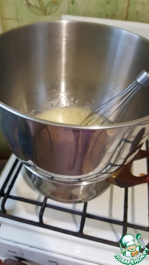 Постоянно помешивая чистым и сухим венчиком, нужно растворить сахар. -