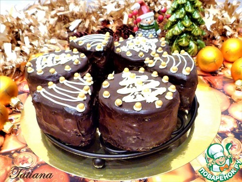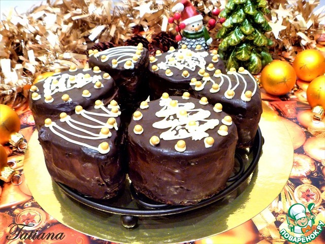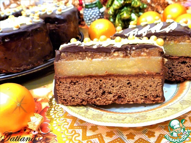 Трехслойное пирожное на основе из пряничного коржа с "ярким" "букетом" пряничных специй, нежным желе из айвы и ароматного марципана. Все это великолепие покрыто шоколадной глазурью, и украшено по-новогоднему... Такие пироженки достойно займут свое место на праздничном столе!