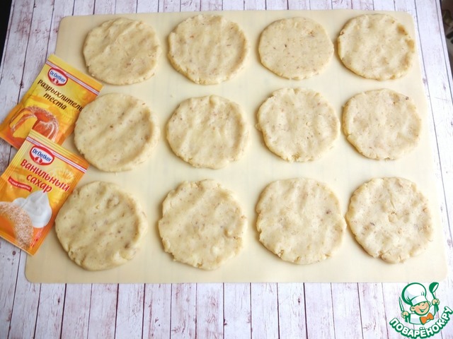 Каждый круг скатываем в шарик и формируем печенье. У меня получилось 12 штук. Я укладывала их сразу на силиконовый коврик, на нем же и выпекала. -