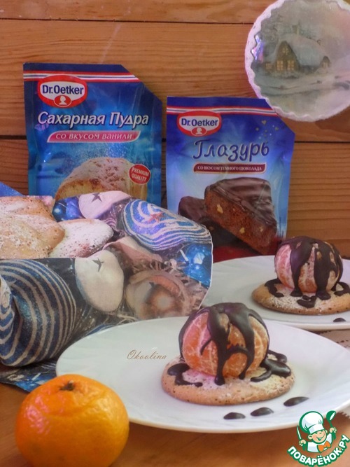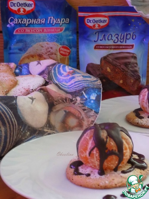 Приготовила глазурь Dr. Oetker, следуя указаниям на пакете и полила мандарины и печенье по вкусу. Можно погуще полить!