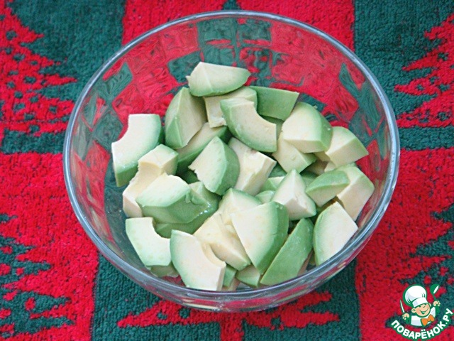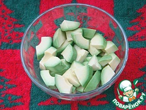 Авокадо очистить, нарезать небольшими кусочками.