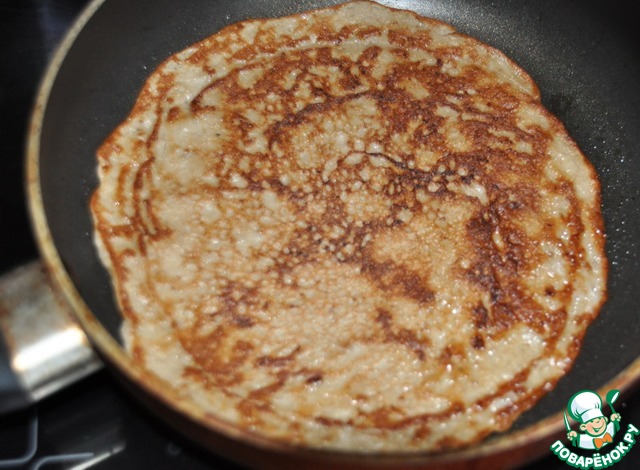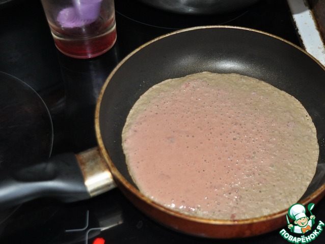 Тесто должно быть гуще, чем на обычные блины, но жиже, чем на оладьи.