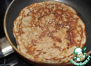Берём сковороду небольшого диаметра, у меня 18 см, нагреваем, смазываем маслом. Наливаем печёночное тесто, жарим на большом огне, пока не схватится тесто.