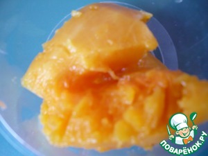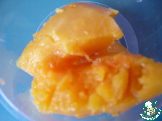 Теплое молоко по две ст. ложки налить в отдельные две миски. Добавьте в первую — тыкву и пробейте блендером.