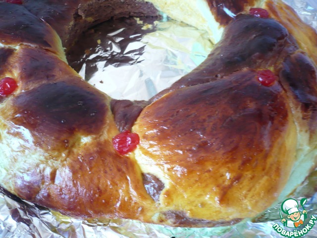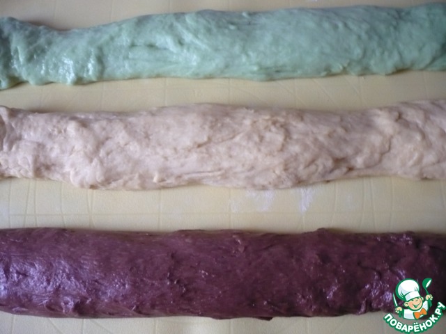 Рецепт «Рождественский трехцветный дрожжевой венок»: