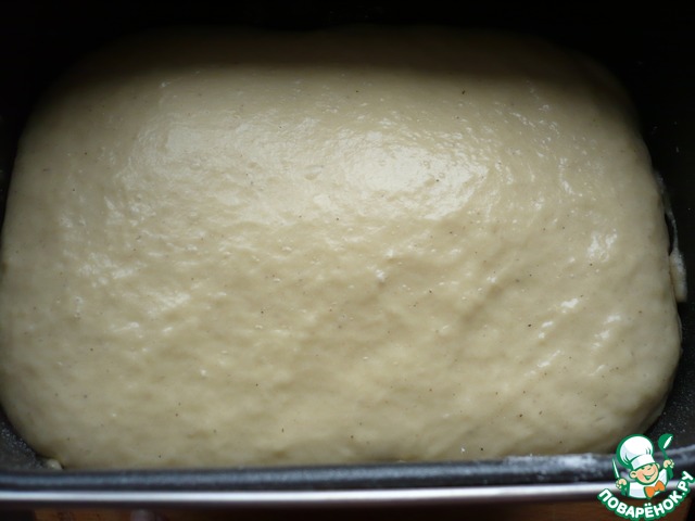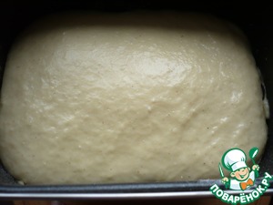 Помещаю ведерко в хлебопечку и включаю режим замеса теста. -
