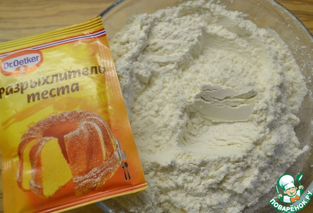 - Мука пшеничная / Мука (может и меньше/больше в зависимости от муки и влажности творога) — 1 стак.