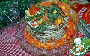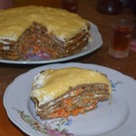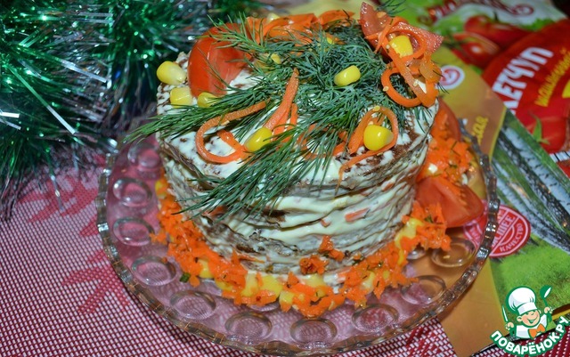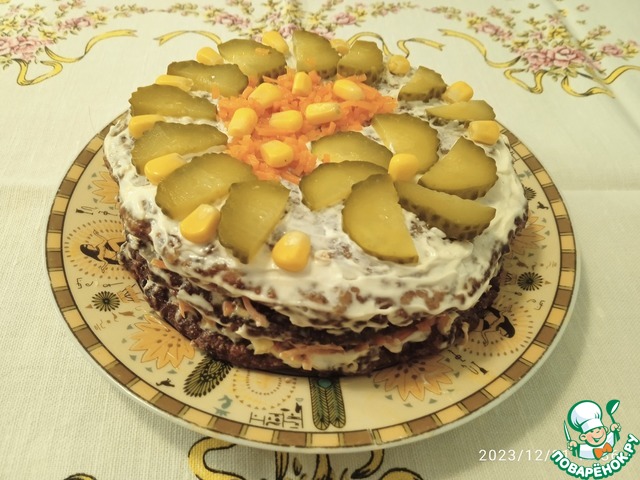 [+4]Очень вкусный торт!В майонез добавила творожный сыр.Очень нравится сочетание печени с фаршем.