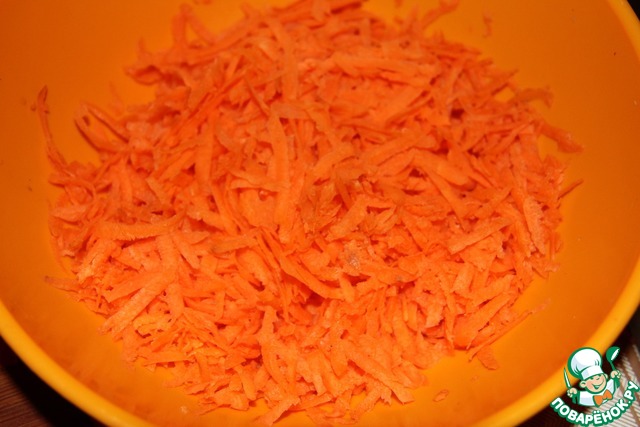 Натереть в чашу морковь на крупной терке.
