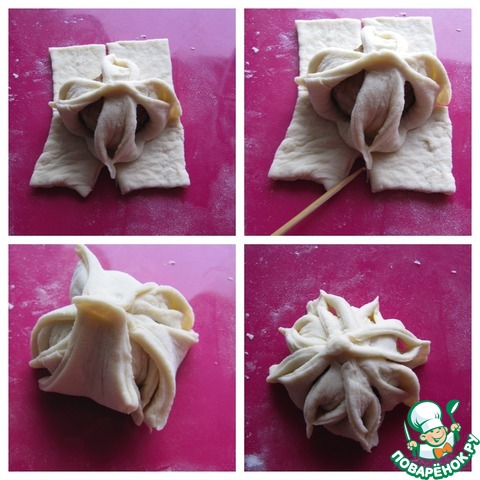 Подправить тесто, чтобы оно напоминало лепестки цветка.