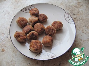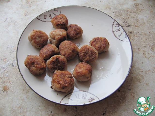 Для мини котлеток важно использовать сочный фарш с добавлением достаточного количества специй, лука и овощей (кабачка, моркови, картофеля, тыквы - на выбор по вкусу.) Сформировать шарики размером с грецкий орех и быстро обжарить в растительном масле на сковороде, в духовке котлетки дойдут до готовности. На эту порцию теста потребуется 25-30 котлеток.