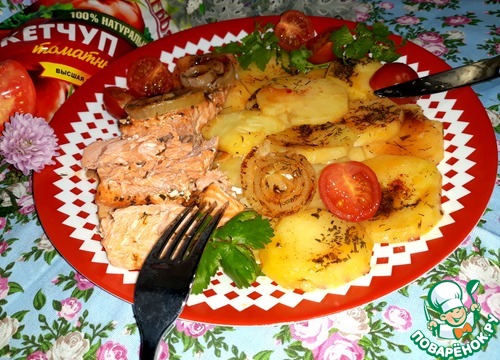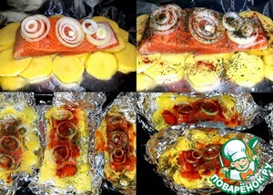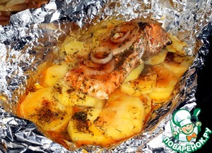 Рецепт «Запечённый лосось с картофелем в фольге»: