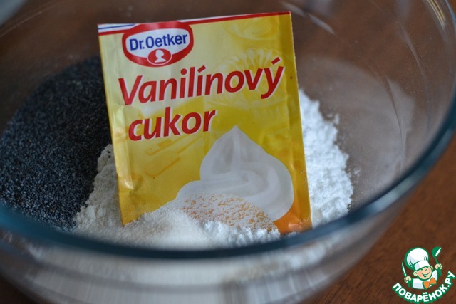 В миске смешать сахарную пудру, ванильный сахар и мак (целый)