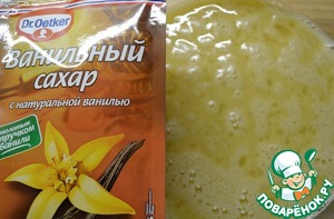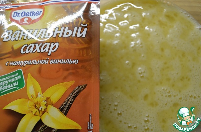 Яйца взбить с сахаром и ванильным сахаром.