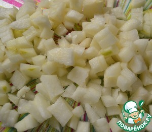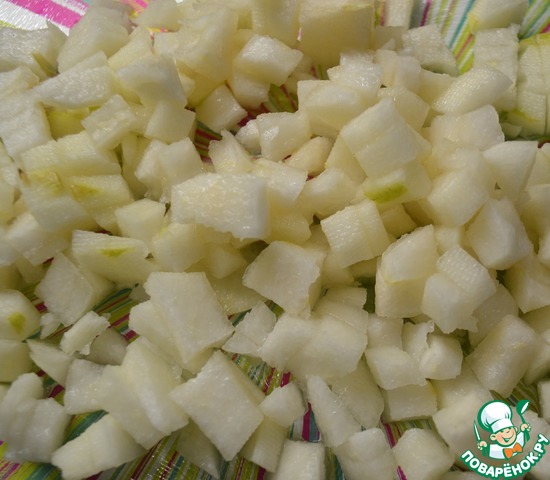 Грушу почистить и нарезать кубиками.