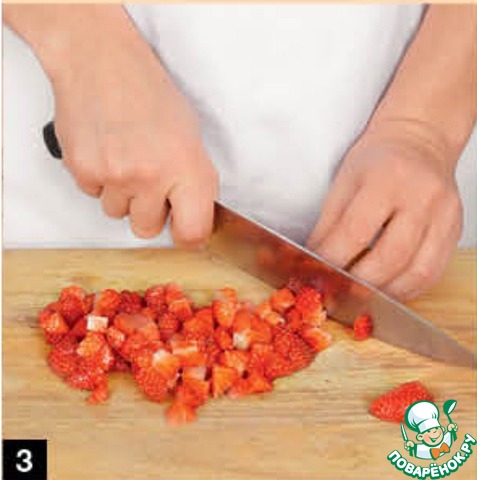 Отложить 200 г клубники. Остальную нарежьте маленькими кубиками.