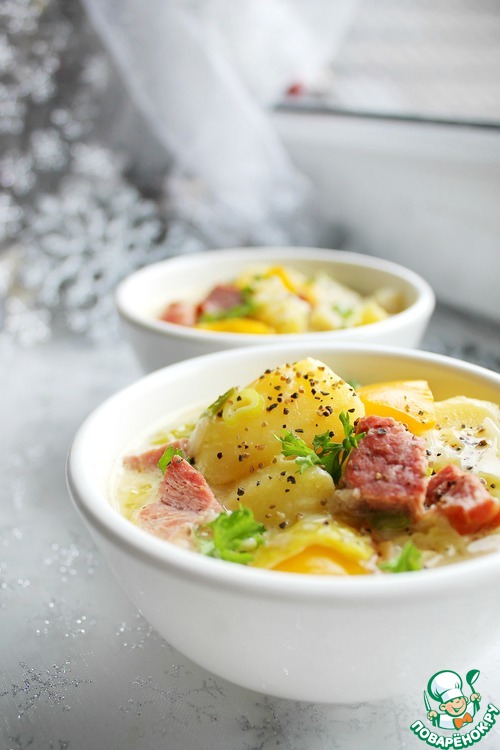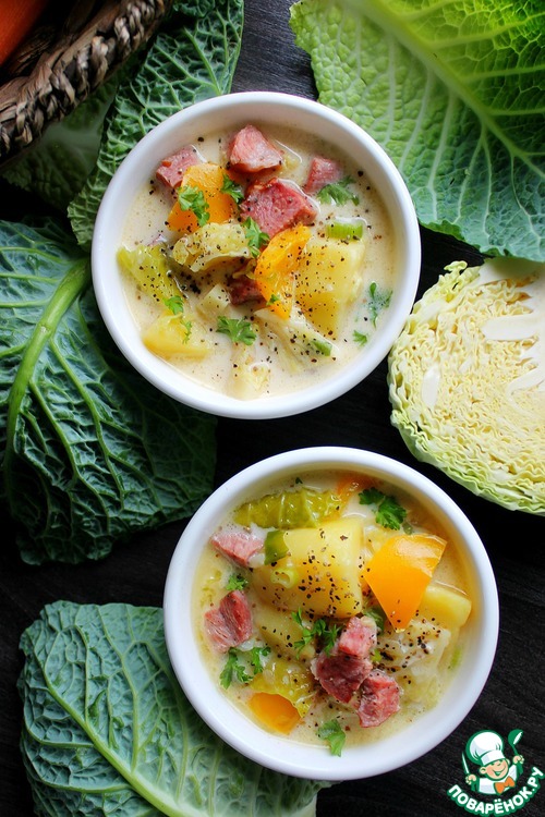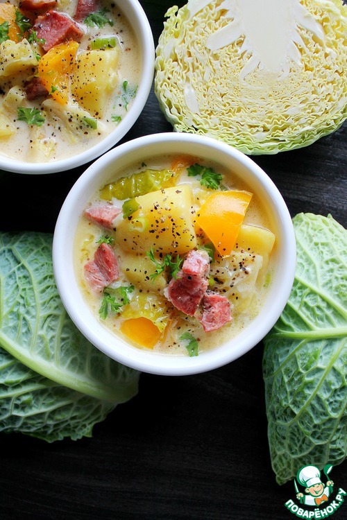 Хочу предложить вам сливочный Айнтопф из савойской капусты с копченой грудинкой. Оригинальное название блюда Wirsing Käse Eintopf. Угощайтесь!