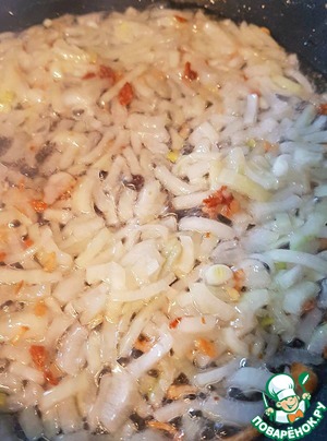 Залить овощным бульоном (или кипятком). Под крышкой варить около 15 минут.