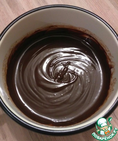 Выложить ганаш на корж. Поставить на холод на 1-2 часа. За это время ганаш застынет (на фото ганаш не застывший, потом поверхность станет более ровной и гладкой).