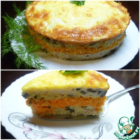 Рецепт «Закусочный торт с шампиньонами "Карусель"»: