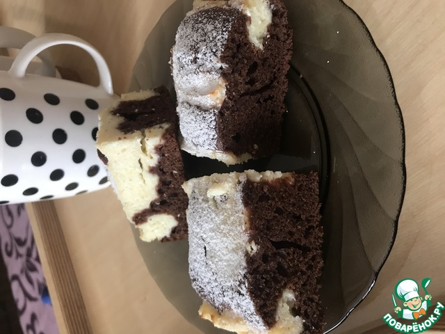 Изумительно нежный, влажный шоколадный бисквит в сочетании с ароматной творожной прослойкой - простой в приготовлении, в меру сладкий, но от того не менее вкусный десерт. Очень рекомендую!