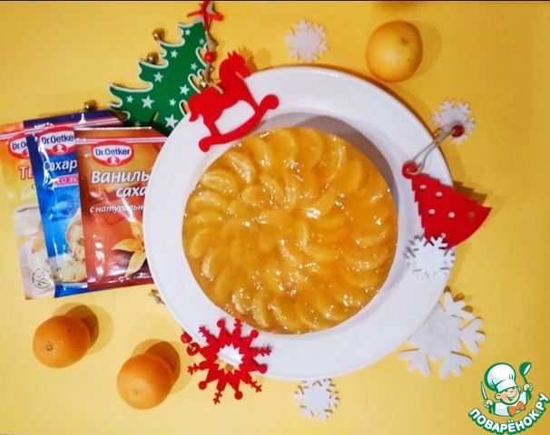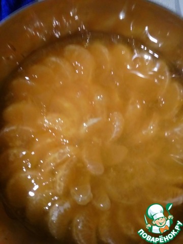 Желе для торта приготовить по инструкции на упаковке и залить мандарины.