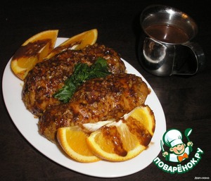 Куриные рулеты с начинкой из меда и грецких орехов, с соусом из апельсина, коньяка и шоколада. Для тех, кто любит сладкое :) Это блюдо может быть приготовлено с помощью кухонных помощников Scarlett.
