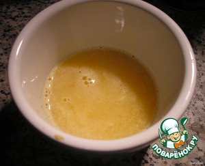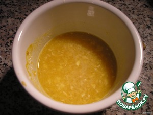 Измельчить чеснок. Добавить его в апельсиновый сок. Добавить карри. Перемешать.