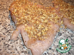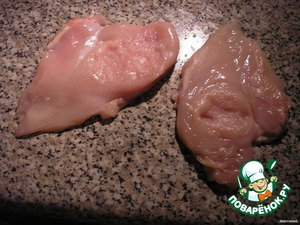 Куриное филе хорошо отбить через пищевую пленку. Натереть солью, перцем, карри.