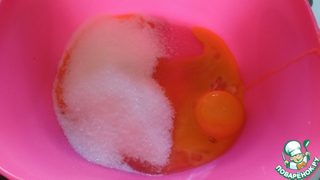 Разделить яйца на белки и желтки. К желткам добавить половину сахара, растереть.