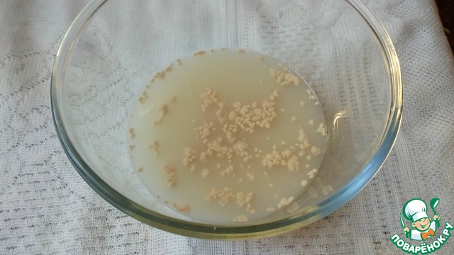 В теплую воду (36-40°С) добавляем сахар и дрожжи (раскрошить), размешиваем. Ставим в тёплое место, минут на 15-30, чтобы дрожжи заработали.