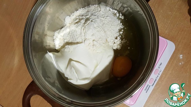 Вспыпать половину муки, перемешать. Затем всыпать вторую половину муки и собрать тесто в шар, если вдруг тесто липкое, то добавить чуть чуть муки. Но обязательно дождитесь, когда остынет масса, потому что теплая масса вбирает в себя больше муки.