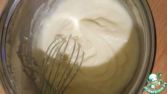 Затем добавлять по столовой ложке заварного крема, и взбивать на макс. скорости, секунд по 30.