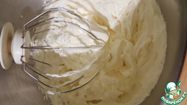 Сливочное масло комнатной температуры взбить на максимальной скорости миксера около 5-7 минут, насытить кислородом.