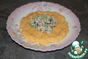 Добавить горчицу по вкусу. Она придаст блюду пикантности. И майонез. Опять же, добавляйте столько, чтобы масса не была жидкой. Перемешать.