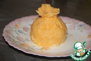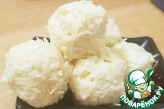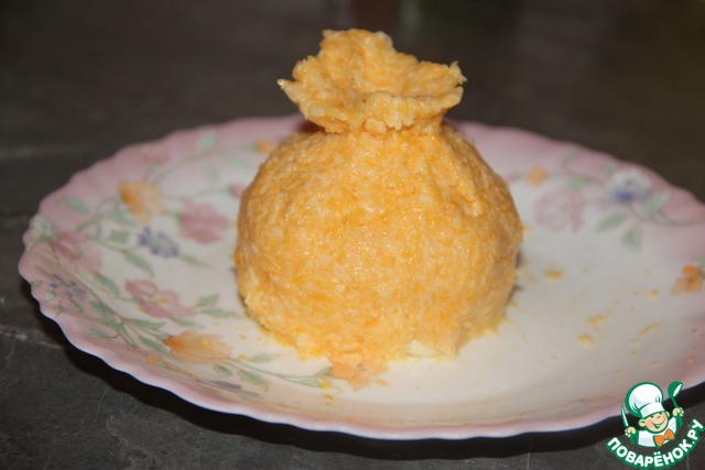 Сыр натереть на мелкой терке. Чеснок натереть или пропустить через пресс. Добавить майонез. Перемешать. Количество майонеза дано приблизительно. Его лучше добавлять по одной ложке, перемешивать и смотреть, требуется еще, или нет. Масса должна получить не жидкой, а такой, чтобы из нее можно было легко лепить. Я использовала майонез Махеев с лимонным соком. Он идеально подходит для этого блюда и по вкусу и по консистенции.
